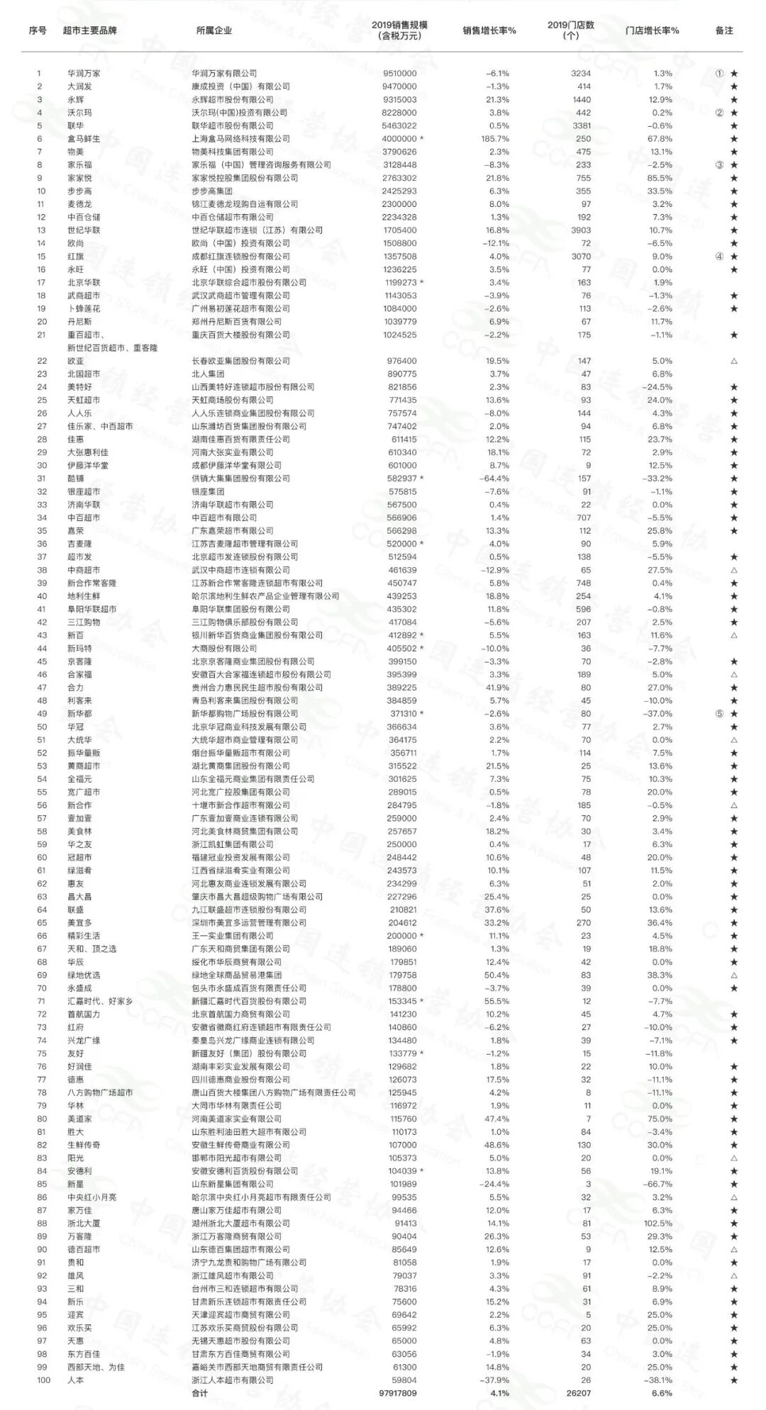2019年超市百强排名