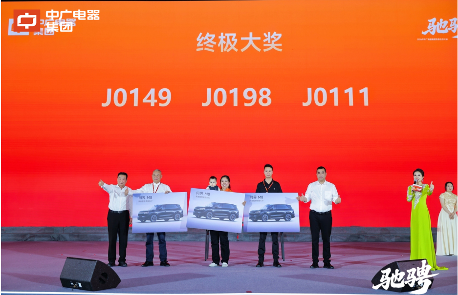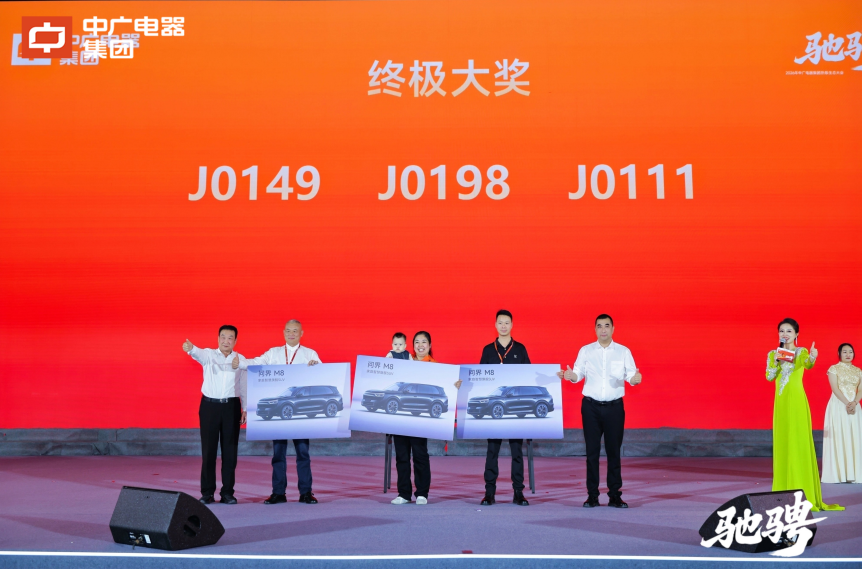 为回馈广大经销商伙伴的鼎力支持,晚宴期间穿插了趣味互动环节与重磅订货抽奖活动,问界M8和比亚迪新能源汽车、华为平板电脑、金钞等奖项逐一揭晓,现场热度持续飙升。
